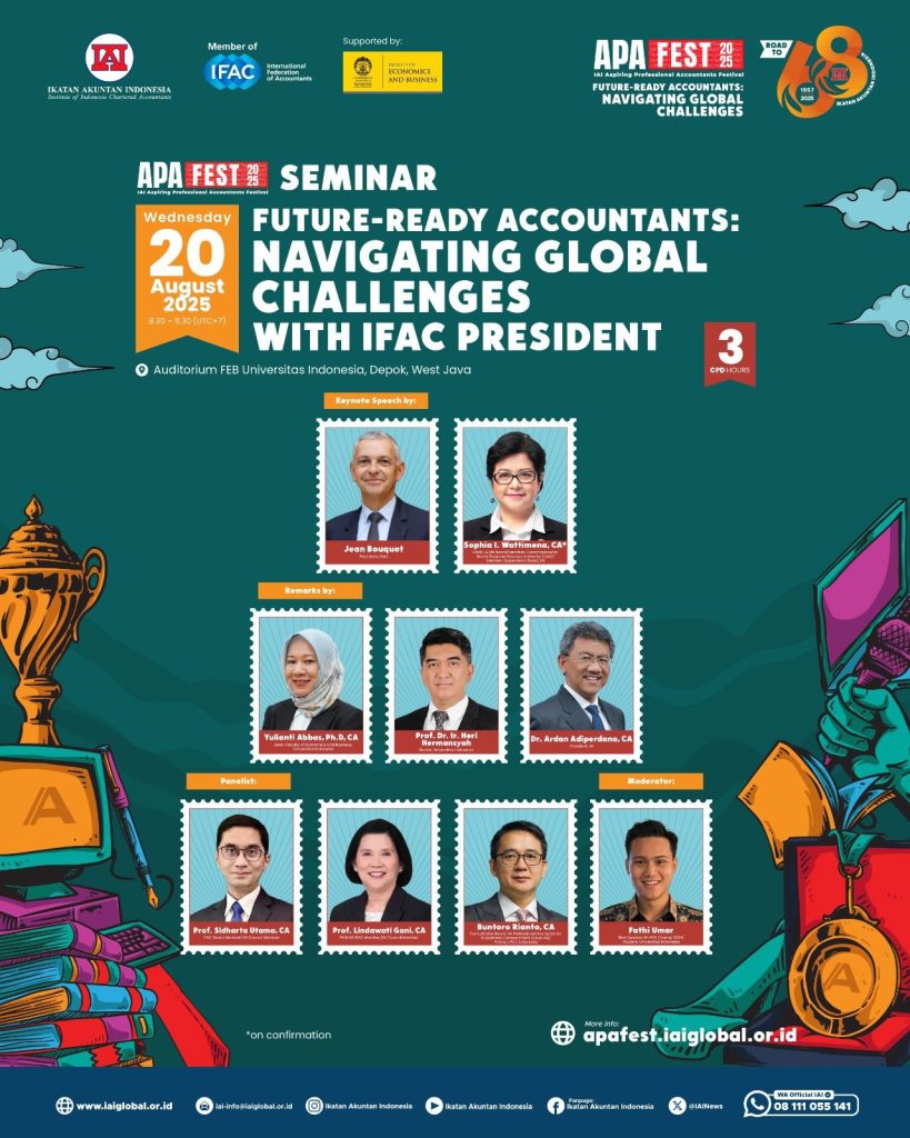 Setelah sukses membuka series of event APA Fest 2025 di D. I. Yogyakarta, IAI kembali menyelenggarakan Seminar APA Fest 2025 Future-Ready Accountants: Navigating Global Challenges dengan menampilkan International Federation of Accountants (IFAC), Mr. Jean Bouquot.